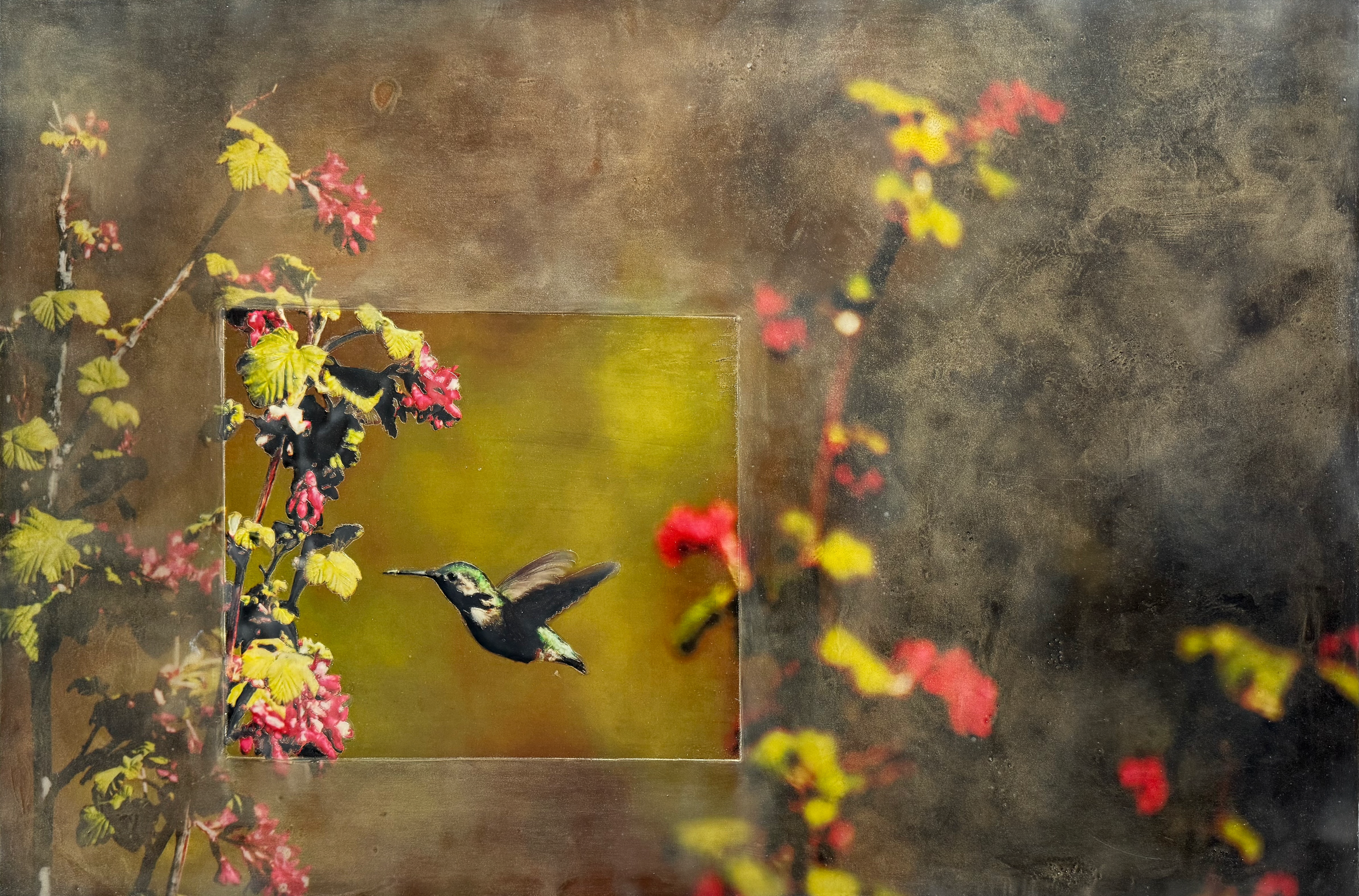 In this process, I start with an archival giclée print, mounted to a cradled wood panel. Next, hot encaustic medium of beeswax and damar is painted onto the surface in fused layers, to add depth and texture to the art. The wax medium also protects and preserves the photographic print.